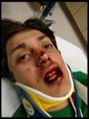 LukeText Box: Great Nephew Vincent Madison lost his balance and fell down a long flight of stairs  while I was on the phone with his mother Lori.  My niece Lori immediately sprung into action and summoned an ambulance, who were diverted to UVA Hospital Head Trauma Unit. Vincent received extensive facial and body injuries that will take some time to heal. While at the hospital he was surrounded by numerous specialists in an attempt to fix his fractured face. Doctors are confident that Vincent will have a full recovery. Disappointed great nephew Anthony Madison was saddened to learn, that he would not be taking over Vincent’s room any time soon. The things my nephews do to make the front page of the family chronicle.